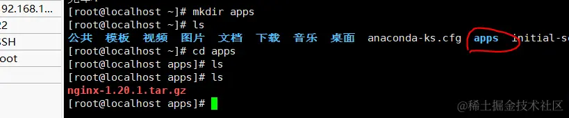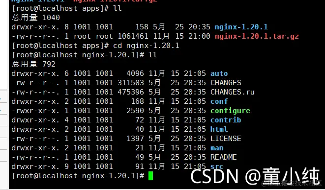 [root@localhost apps]# tar -zxvf nginx-1.20.1.tar.gz (解压)