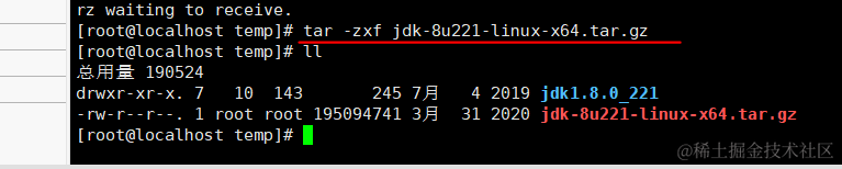 解压命令: tar -zxf jdk-8u221-linux-x64.tar.gz