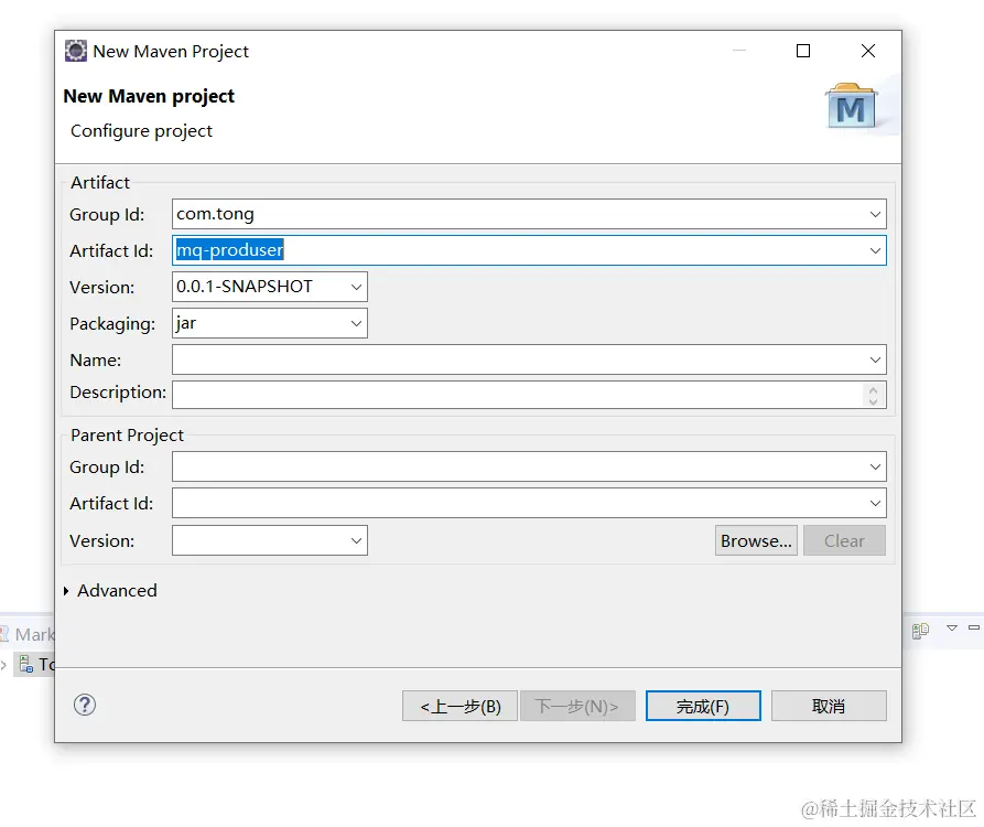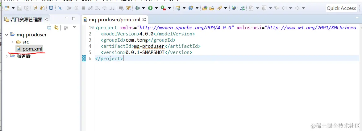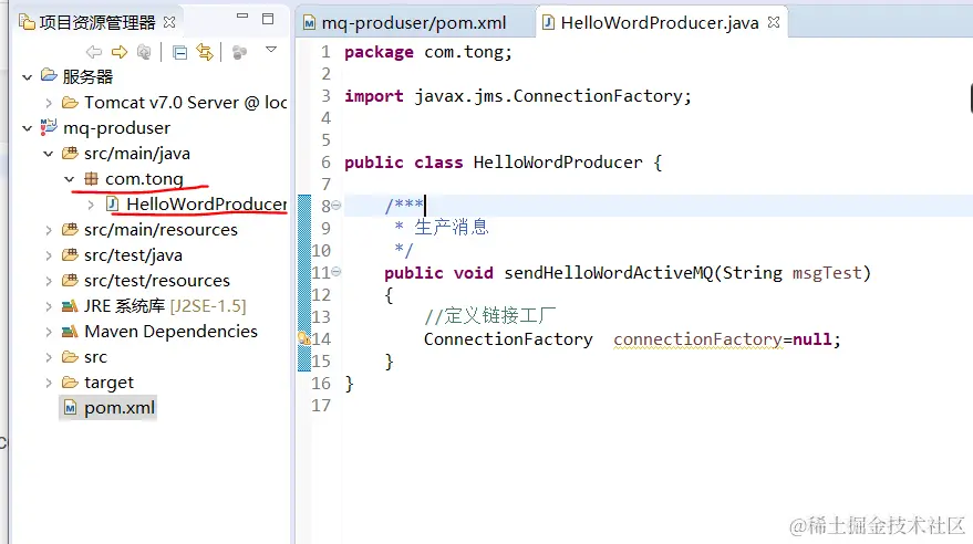 添加一个com.tong文件夹 在里面创建一个名为HelloWordProducer的类