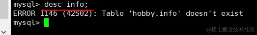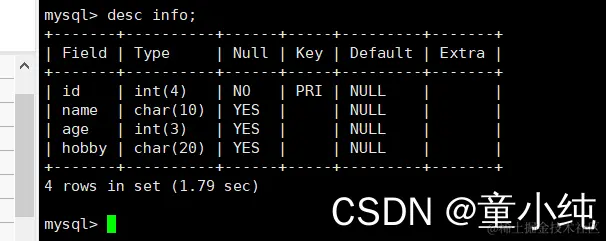 desc info; #查看info表是否删除成功