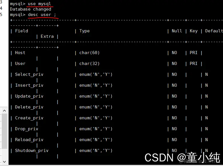 #查看表user结构