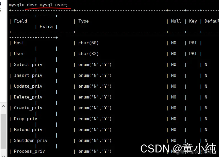 desc mysql.user;
