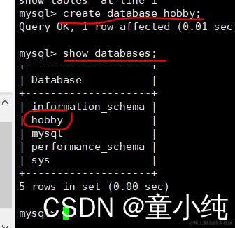 #示例:创建一个名为hobby的数据库