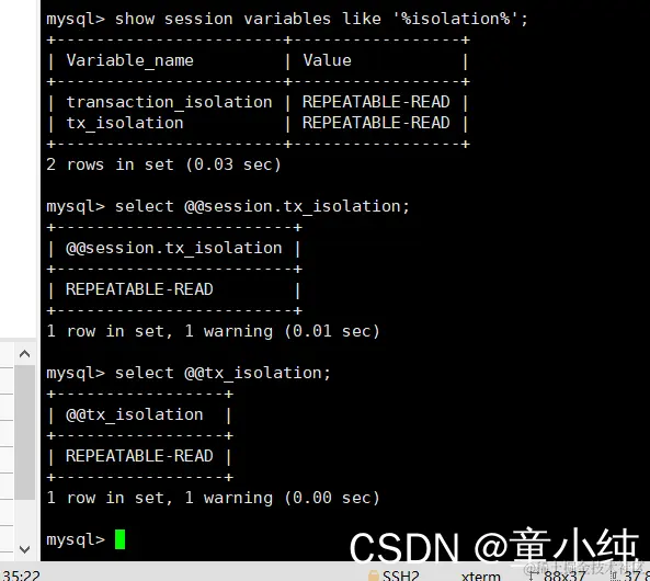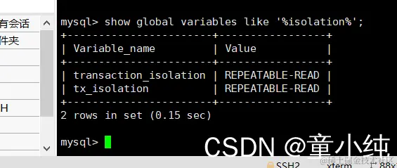 (3)repeatable_read (重读读取):可以解决脏读 和 不可重复读 —mysql默认的