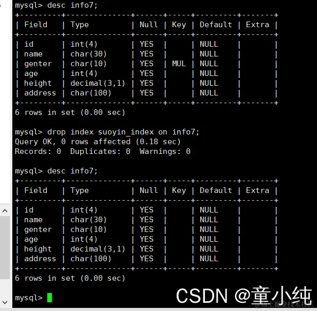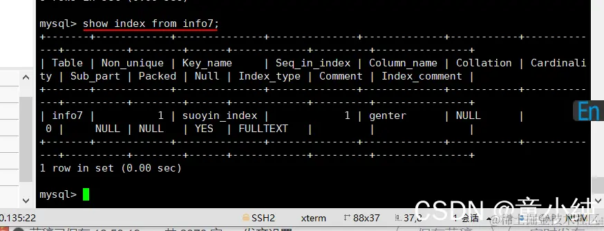 | sub_part | 如果列只是被部分地编入索引,则为被编入索引的字符的数目。如果整列被编入索引,则为NULL |