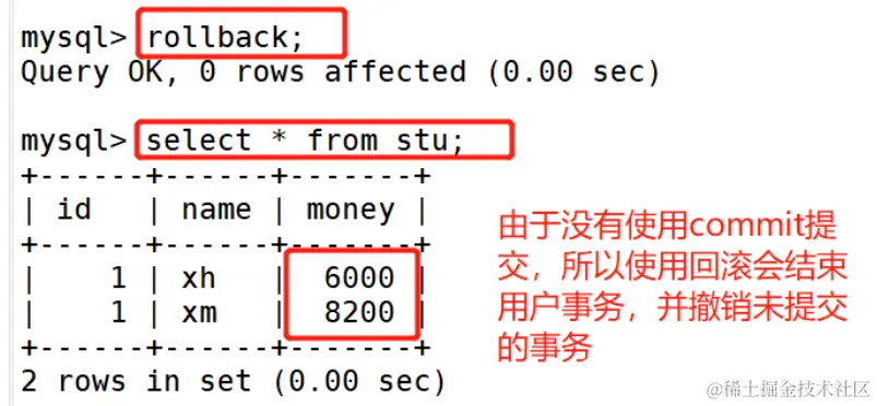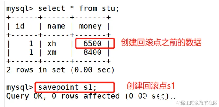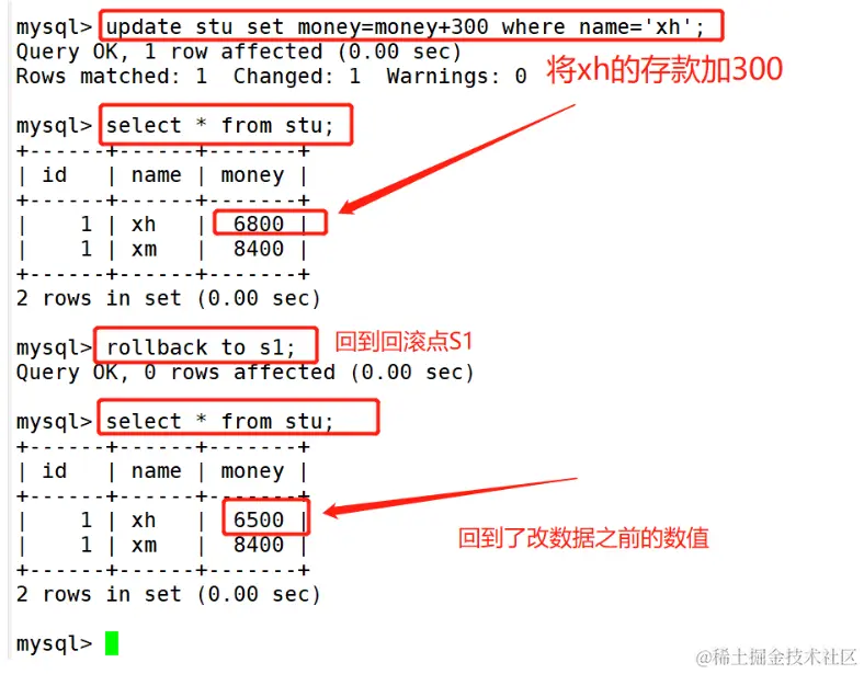 ROLLBACK TO [SAVEPOINT] S1:把事务回滚到标记点。