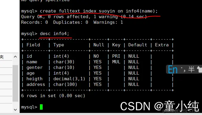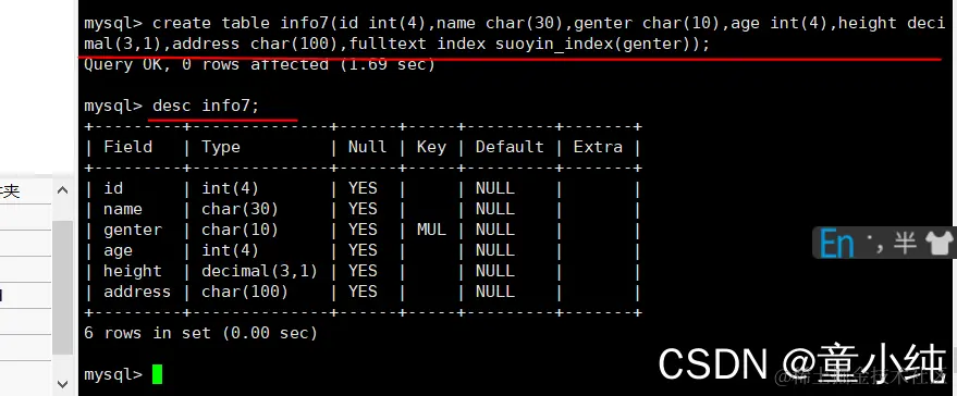 CREATE TABLE 表名 (字段1 数据类型[,...],FULLTEXT 索引名 (列名));