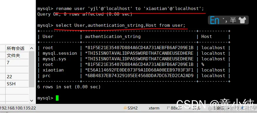 rename user 'yjl'@'localhost' to 'xiaotian'@'localhost';