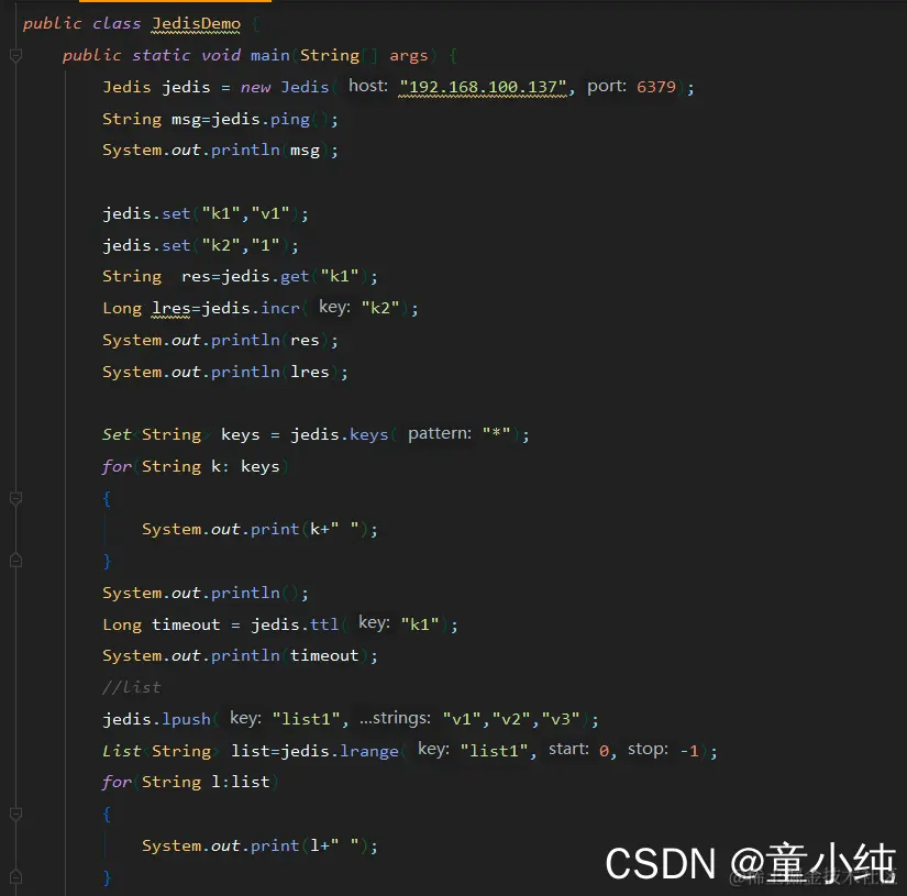 jedis.lpush("list1","v1","v2","v3");//向list中添加数据