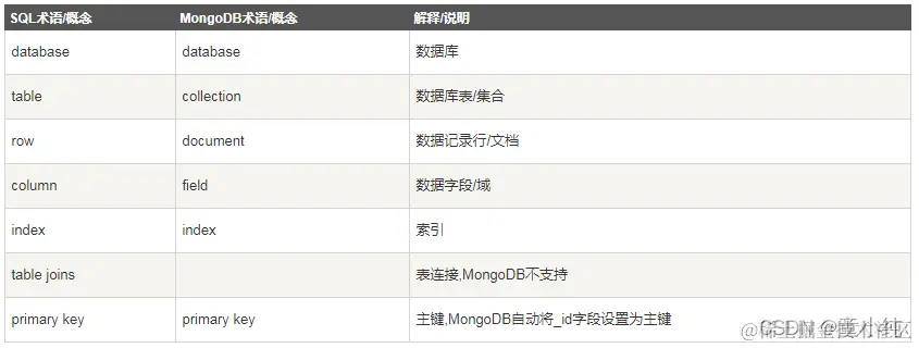 3 RDBMS 与 MongoDB 对应的术语