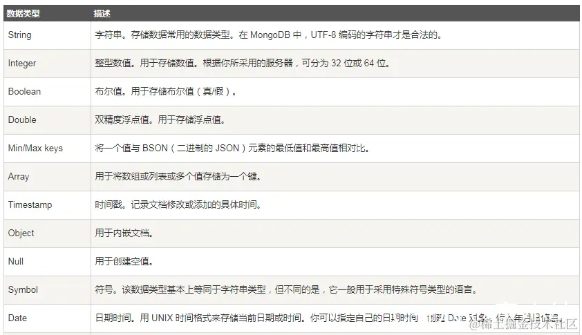 三、 MongoDB 的数据类型