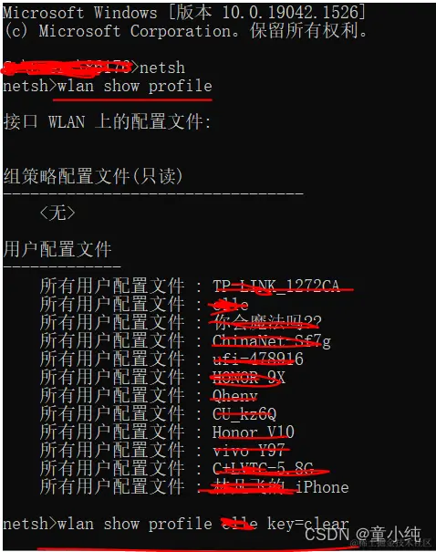 PC端创建WiFi密码 童小纯 2023-01-31 117 阅读1分钟 1.win+R打开命令窗口,输入“cmd”运行指令, 2.在新的窗口输入“netsh”回车, 3输入“wlan show profile”查看电脑连接过的wifi 4输入“wlan show profile hf(wifi名称) key=clear”获取wifi的密码即可。