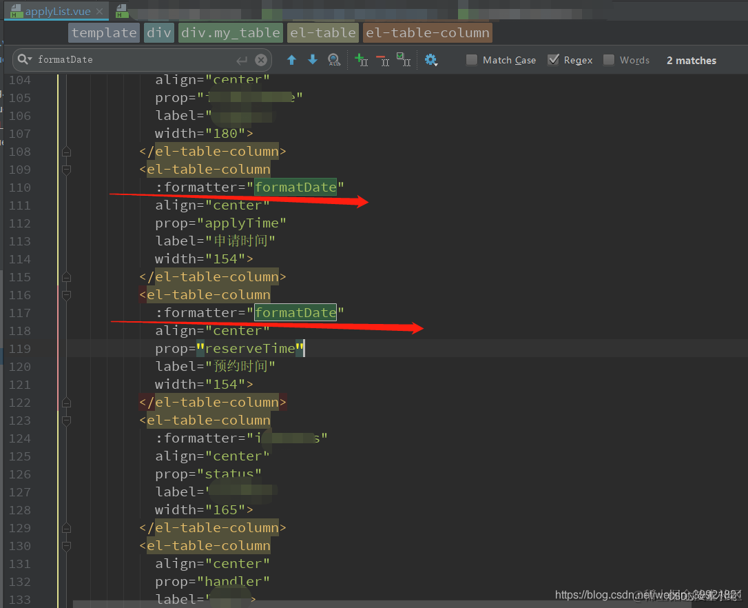 在列表展示的熟悉中运用和上面一样都用:formatter="formatDate"就ok了。