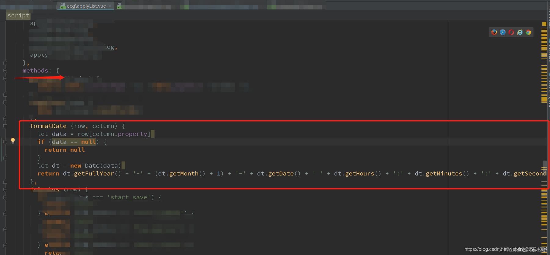 ②将它只是变为局部的格式化时间调用,那么就需要把格式化时间的代码放在调用页面的方法中一下这个方法只需要放在本页面的method底下就好了