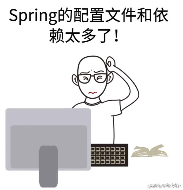 Spring是一个非常优秀的轻量级框架,以IOC(控制反转)和AOP(面向切面)为思想内核,极大简化了JAVA企业级项目的开发。虽然Spring的组件代码是轻量级的,但它的配置却是重量级的。使用Spring进行项目开发需要在配置文件中写很多代码,所有这些配置都代表了开发时的损耗。