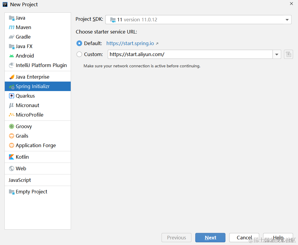 在IDEA中新建项目,项目类型为Spring Initializr,选择JDK版本
