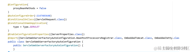 我们 ServletWebServerFactoryAutoConfifiguration 为例来分析源码: