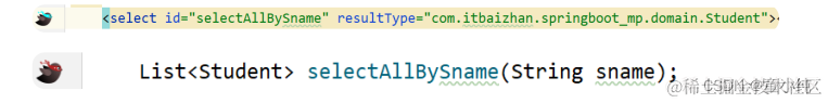 点击Mapper接口或映射文件前的小鸟图案,即可快速在Mapper接 口与映射文件间跳转