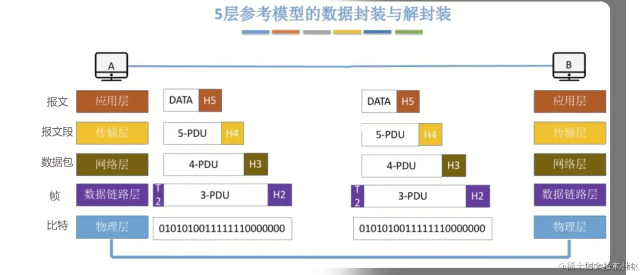2 接收方数据处理的方式是从底层到高层,逐层进行数据解封。