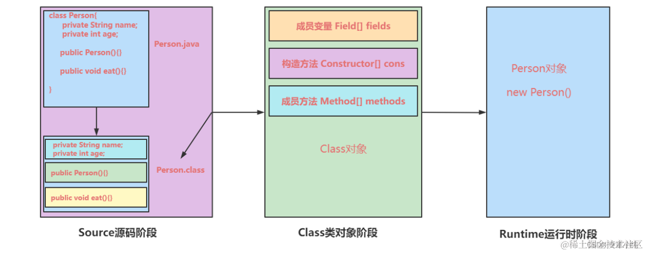实际上,我们在加载任何一个类时都会在方法区中建立“这个类对应 的Class对象”,由于“Class对象”包含了这个类的整个结构信息,所 以我们可以通过这个“Class对象”来操作这个类。 我们要使用一个类,首先要加载类;加载完类之后,在堆内存中, 就产生了一个 Class 类型的对象(一个类只有一个 Class 对象), 这个对象就包含了完整的类的结构信息。我们可以通过这个对象知 道类的结构。这个对象就像一面镜子,透过这个镜子可以看到类的 结构,所以,我们形象的称之为:反射。 因此,“Class对象”是反射 机制的核心。
