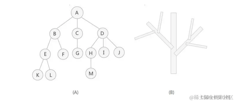 常见树形结构: 二叉树,红黑树,B 树,哈夫曼树等。