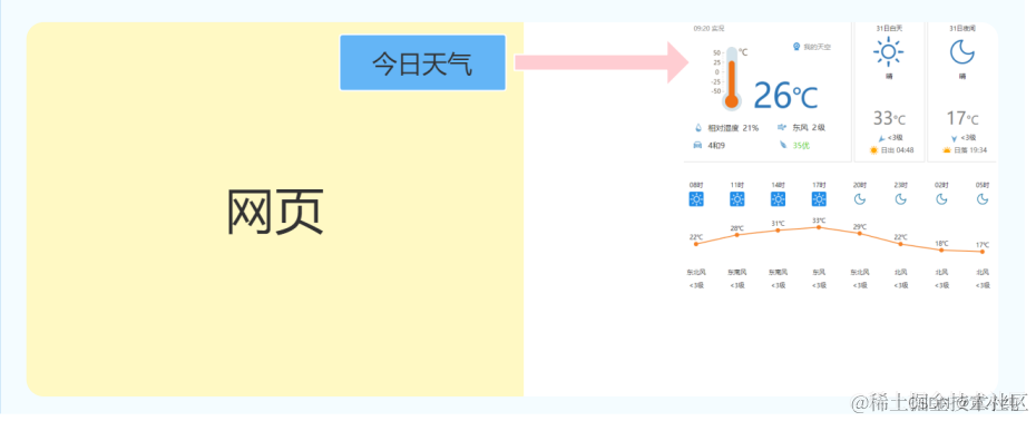 比如我们要开发一个网站,在网页的右上角需要显示今日天 气,如果人工查询天气预报维护非常繁琐,我们就可以使用爬 虫程序自动爬取天气网站的程序,自动更新。