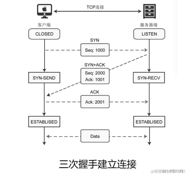 TCP是一个可靠的传输协议,在创建连接时会经历三次握手,在断 开连接时会经历四次挥手。TCP 三次握手,其实就是 TCP 应用在发 送数据前,通过 TCP 协议跟通信对方协商好连接信息,建立起TCP 的连接关系。