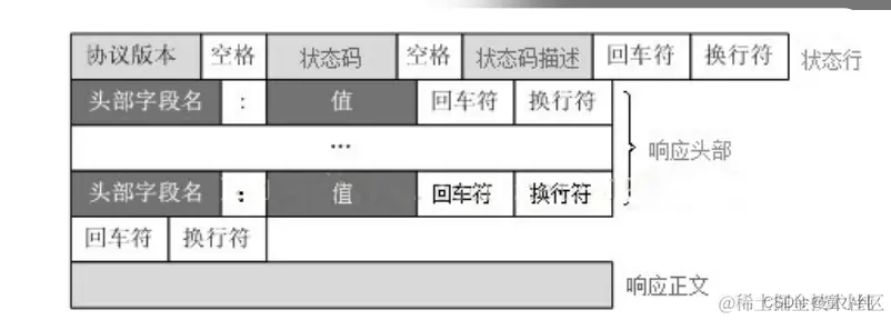 Response消息也由三部分组成:第一部分叫Response line、第二 部分叫Response header、第三部分叫Response body。 服务端为浏览器返回消息格式如下: