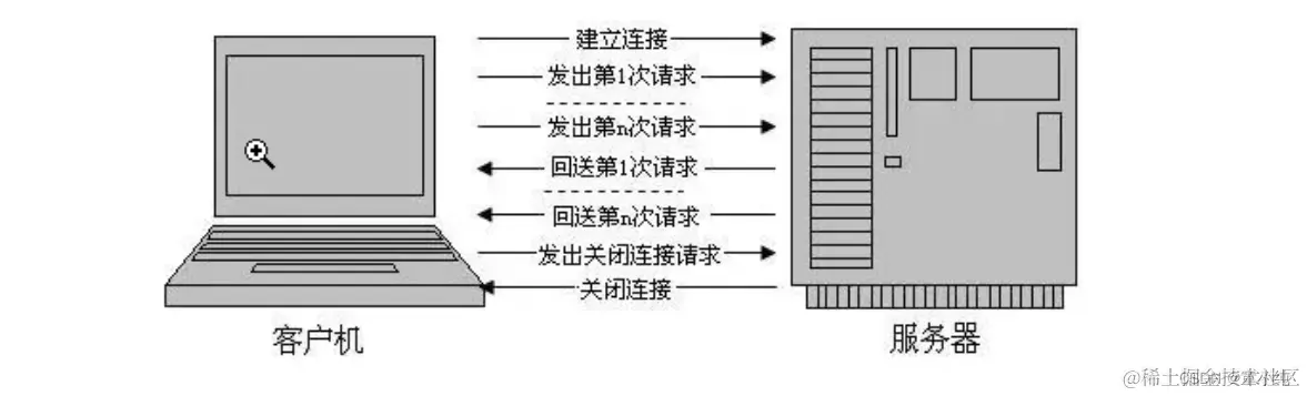 无连接:每次请求一次,释放一次连接。所以无连接表示每次连接只能处理 一个请求。优点就是节省传输时间,实现简单。我们有时称这种无 连接为短连接。对应的就有了长链接,长连接专门解决效率问题。 当建立好了一个连接之后,可以多次请求。但是缺点就是容易造成 占用资源不释放的问题。当HTTP协议头部中字段Connection: keep-alive表示支持长链接