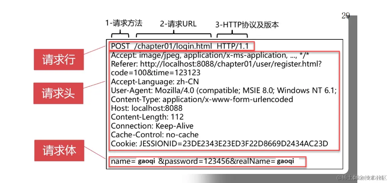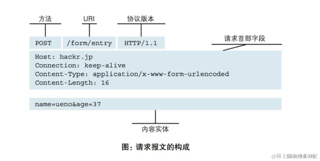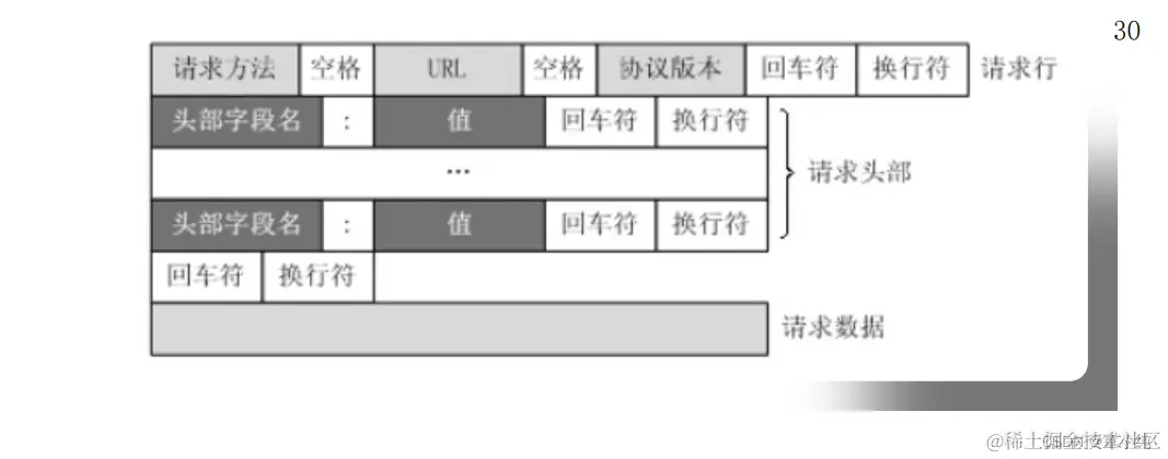 Request 消息分为3部分,第一部分叫Request line, 第二部分叫 Request header, 第三部分是Request body。Request header和 Request body之间有个空行。 客户端发送一个HTTP请求到服务器的请求消息包括以下格式: