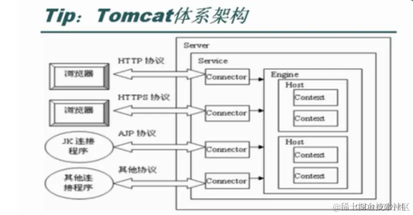 Tomcat 的配置文件由4个xml组成,分别是 context.xml、 web.xml、server.xml、tomcat-users.xml。每个文件都有自己的 功能与配置方法。