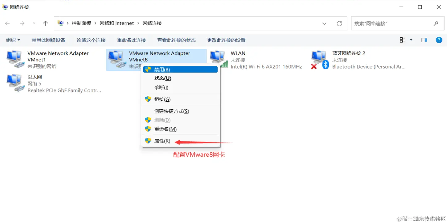 注意: 实际上VMware Network Adapter VMnet8的作用是为了实现虚 拟机和主机之间相互通信!