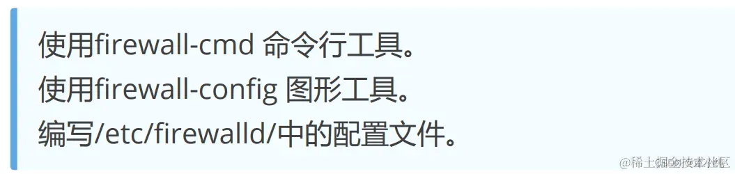 Linux 命令时曾经听到,命令行终端是一种极富效率的工作方式, firewalld-cmd 是 firewalld 防火墙配置管理工具的 CLI(命令行界 面)版本。