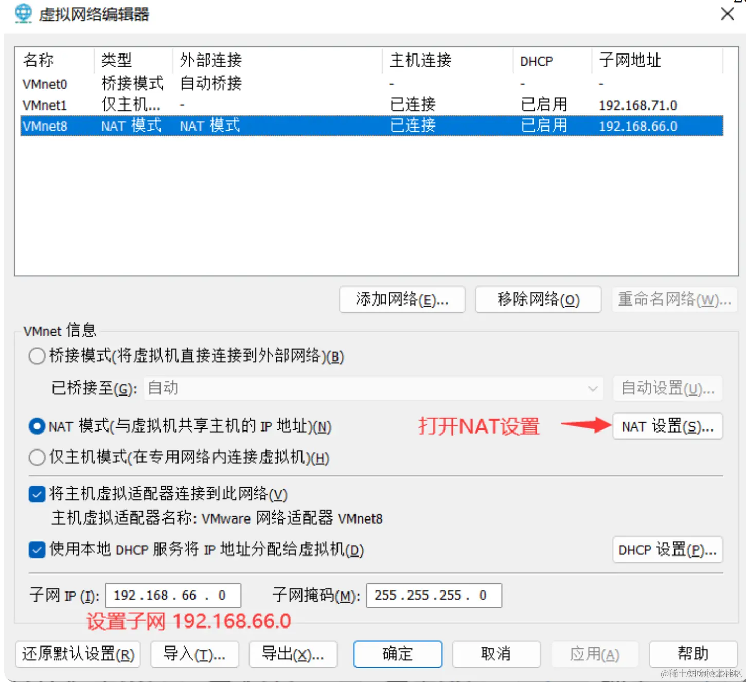 设置子网打开NAT设置