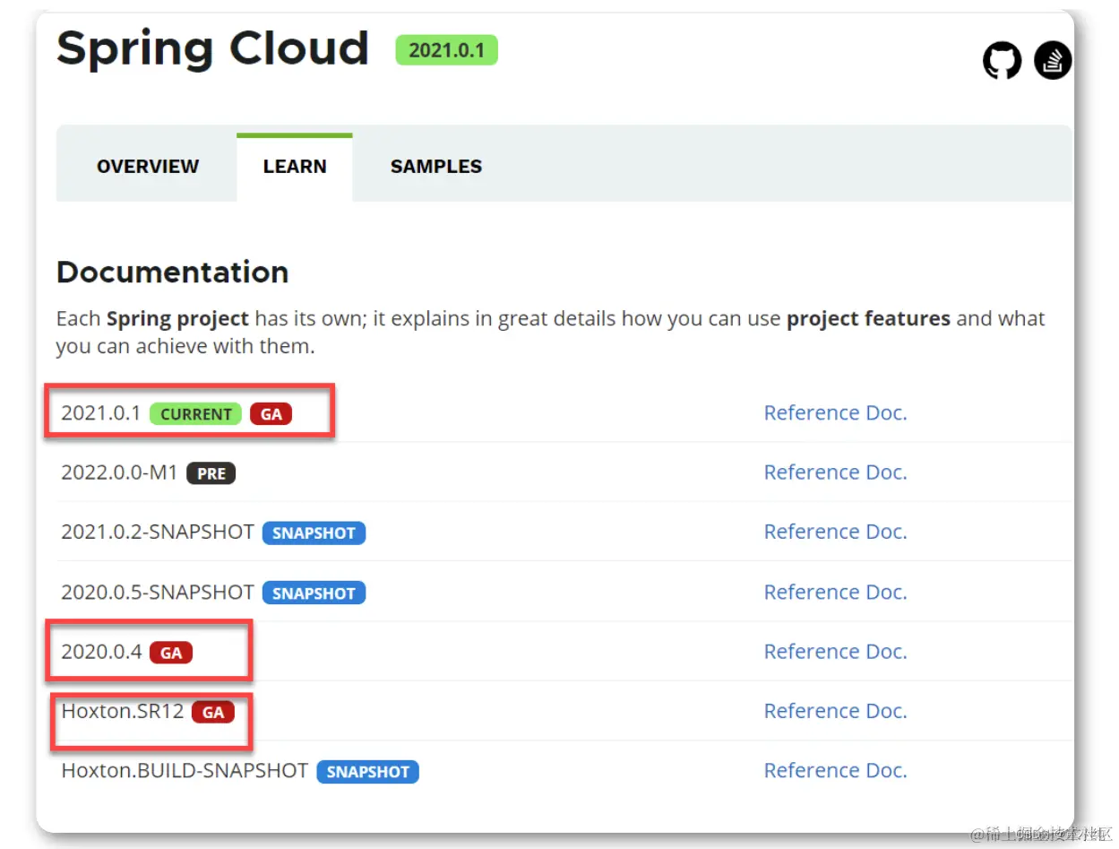 下表为按时间顺序发布的 Spring Cloud Alibaba 以及对应的适配 Spring Cloud 和 Spring Boot 版本关系(由于 Spring Cloud 版本 命名有调整,所以对应的 Spring Cloud Alibaba 版本号也做了对应变化)