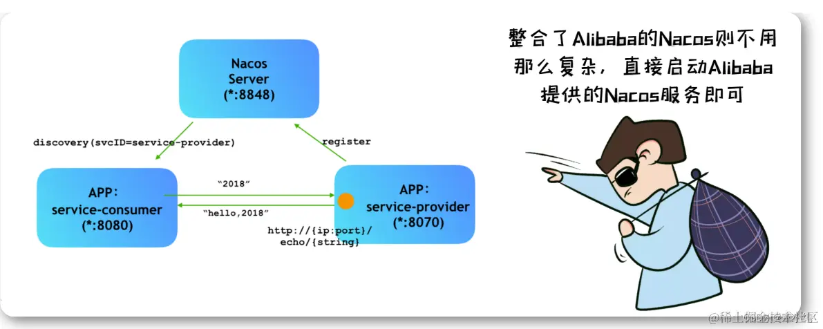 Nacos 使服务更容易注册,并通过DNS或HTTP接口发现其他服务, Nacos还提供服务的实时健康检查,以防止向不健康的主机或服务实例发送请求。
