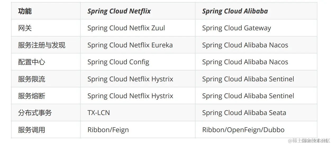 SpringCloud 和 Spring Cloud Alibaba的功能对比