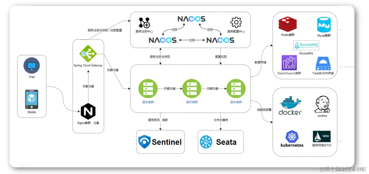 Spring Cloud Alibaba致力于提供微服务开发的一站式解决方案。 此项目包含开发分布式应用微服务的必需组件,方便开发者通过 Spring Cloud 编程模型轻松使用这些组件来开发分布式应用服务。