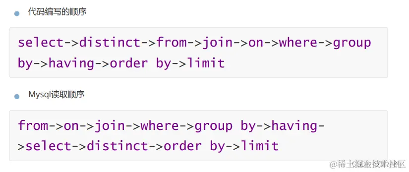 我们在编写sql代码时的顺序和Mysql内部读取sql时的顺序是不一样 的,因此有必要搞清楚Mysql读取sql语句的顺序。