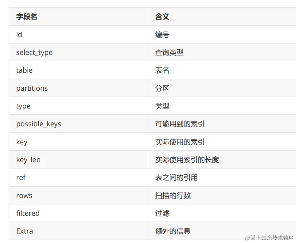 索引使用的字节数,key_len显示的值为索引字段的最 大可能长度