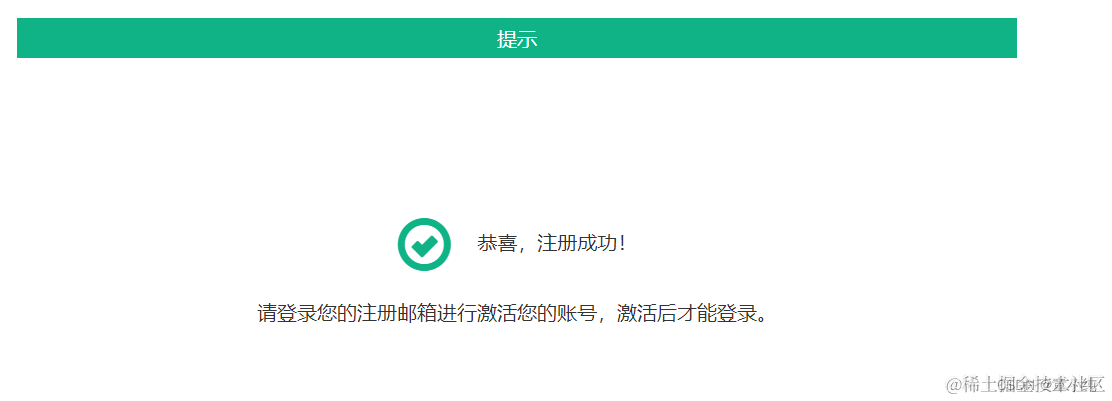 MemberController@RequestMapping("/active") public ModelAndView active(String activeCode) { ModelAndView modelAndView = new ModelAndView(); String active = memberService.active(activeCode); modelAndView.addObject("message",active); modelAndView.setViewName("/frontdesk/active_result"); return modelAndView; }3.编写激活结果页面