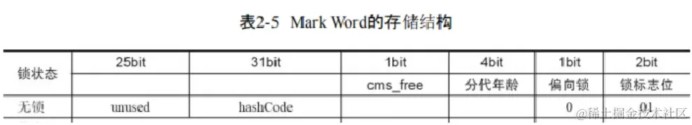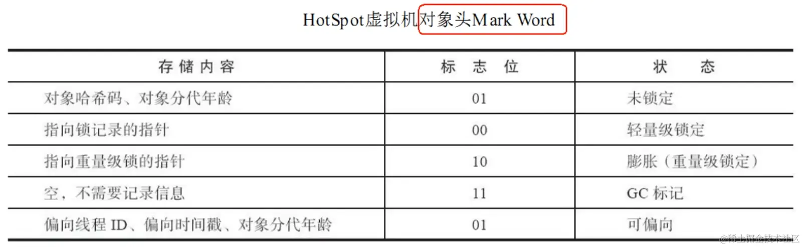 包含哈希码,GC标记,GC次数,同步锁标记,偏向锁持有者。