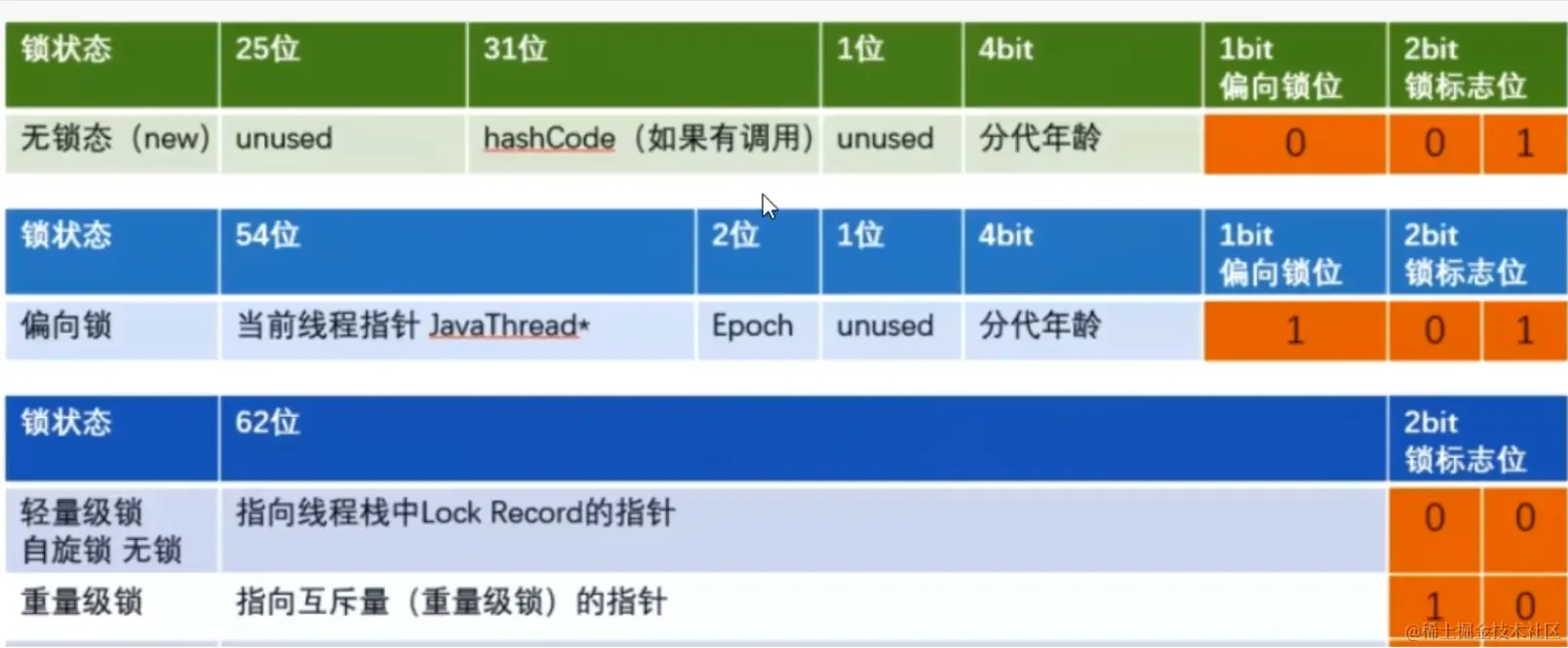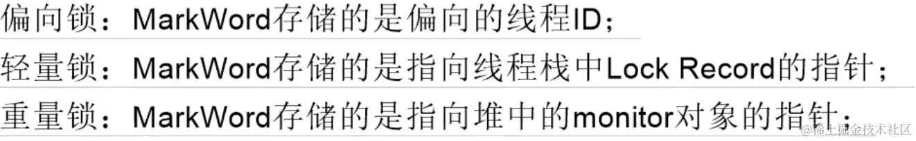 markword中得锁标记位得变化。锁的指向变化如下图。