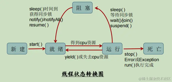 run方法由jvm调用,自己调用不是多线程,一个线程对象只能调用一次start