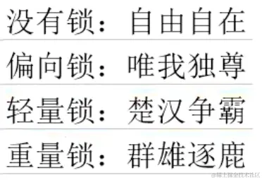 - 无锁-偏向锁-轻量级锁-重量级锁