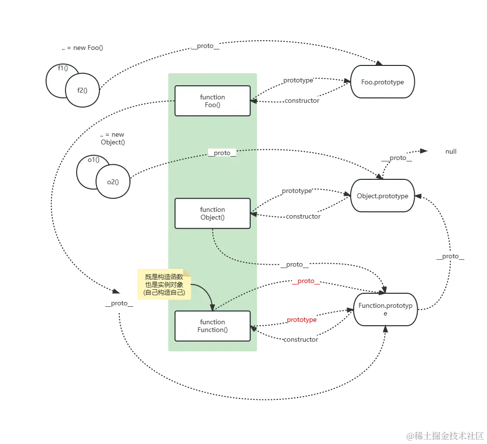大家可能会有一个疑问,_proto_作为一个属性为啥可以有constructor属性?其实很简单,prototype作为一个对象可以有constructor属性,而_proto_又指向prototype,所以就相当于_proto_有constructor属性