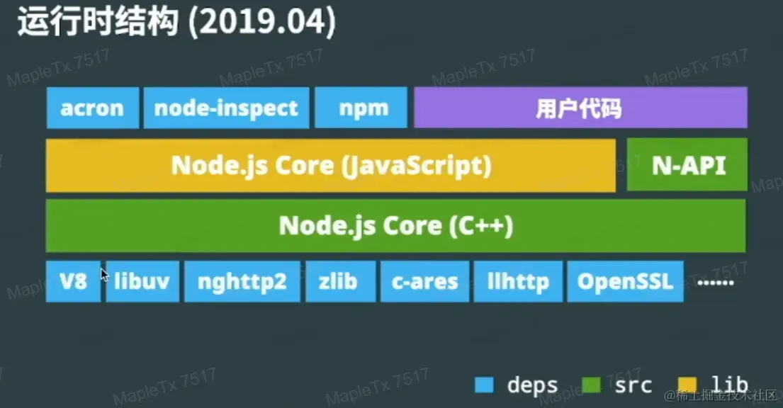 V8:JavaScript,Runtime,诊断调试工具 (inspector) libuv: eventloop (事件循环),syscall (系统调用)