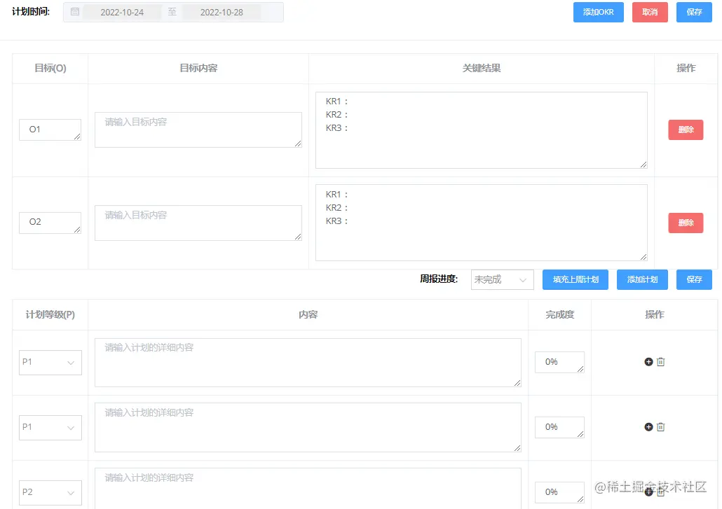 以我们团队为例,我们在一个季度的OKR执行周期中,每周都会同步自己的计划,执行计划需要聚焦于OKR,避免流水账和无意义的凑数。每周的计划完成后,都会推动OKR的完成度提升一点。