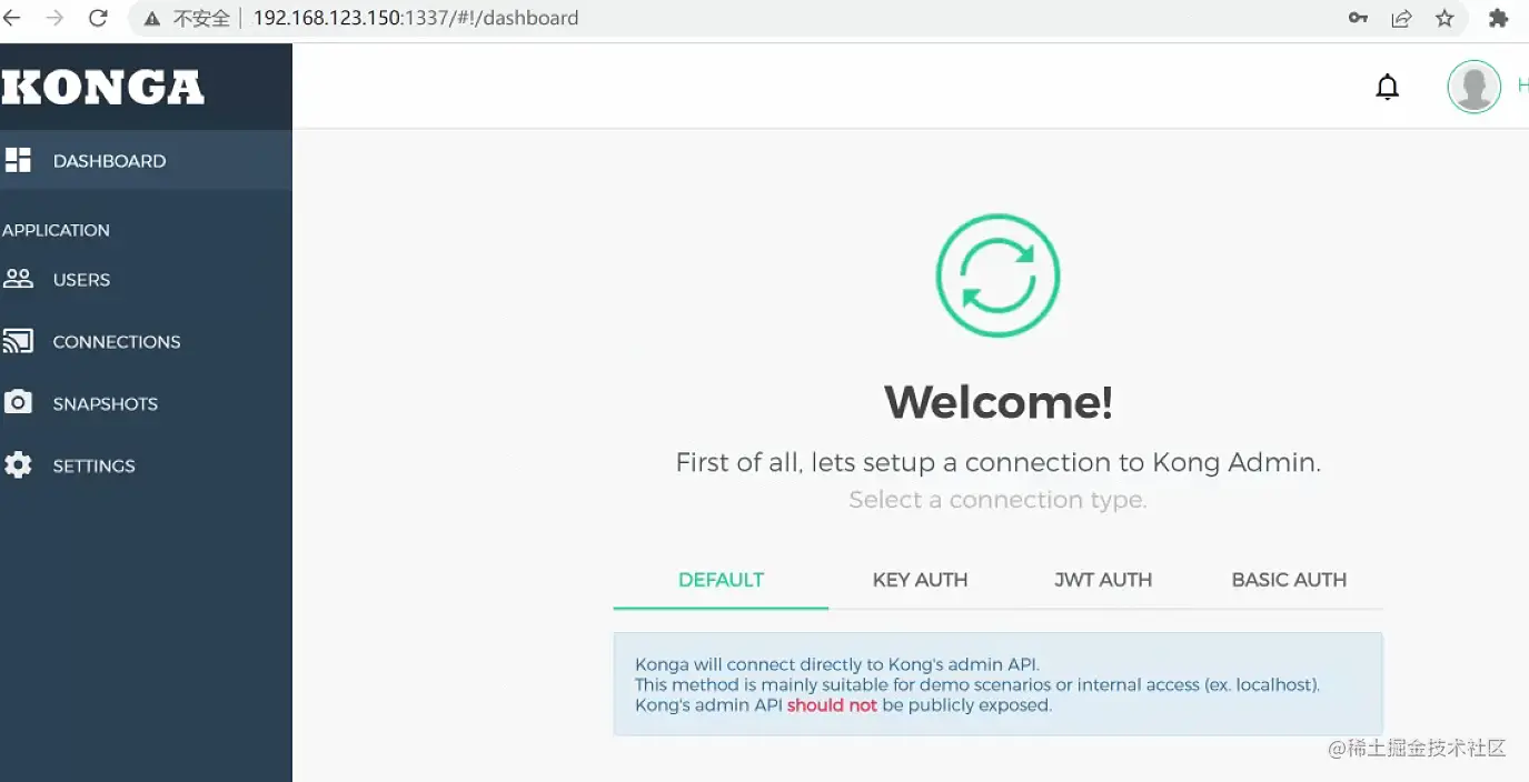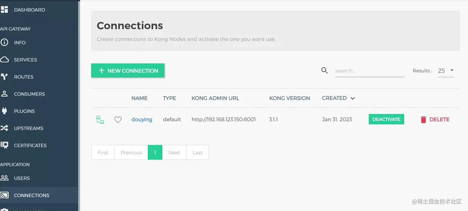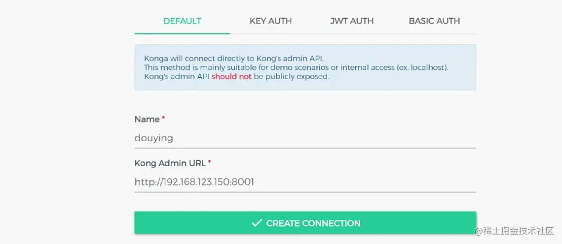 这里需要注意一下kong和konga是独立的。konga可以管理多个kong,可以在connections中配置