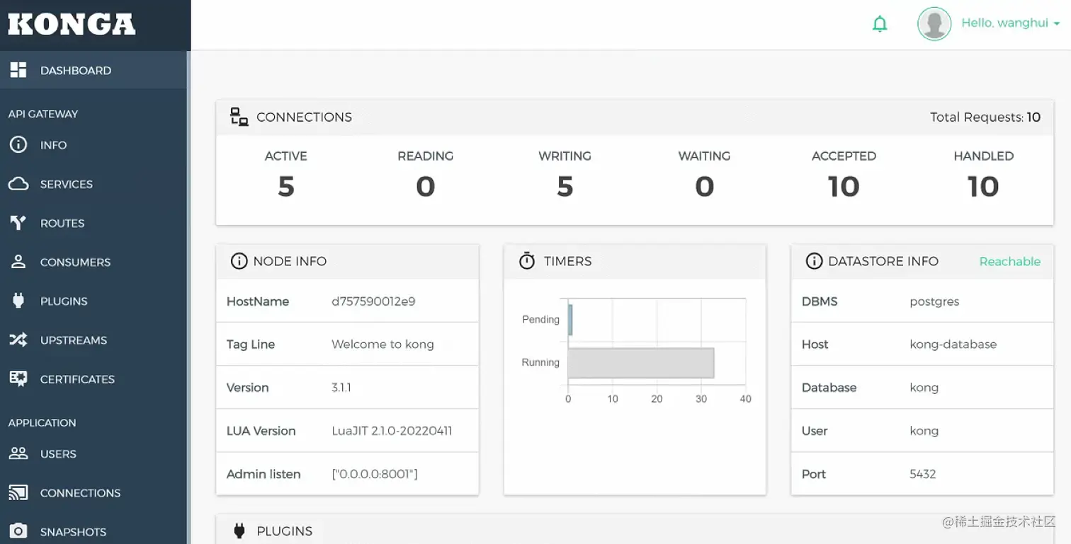 这些端口暴露出来是Kong用于管理API,如果在生产环境请使用防火墙保护,防止未经授权的访问: